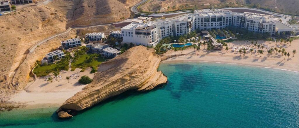 منتجع آخر مميز هو **فندق قصر البستان**، الذي يقع على خلفية درامية من جبال الحجر. غالبًا ما يوصف هذا المنتجع بأنه “قصر على البحر”، ويمزج بين الهندسة المعمارية العمانية التقليدية والفخامة الحديثة. يوفر شاطئه الخاص وحدائقه المورقة ومسابحه المترامية الأطراف المكان المثالي للاسترخاء. يتمتع Al Bustan Palace بشعبية خاصة بين العائلات، وذلك بفضل مرافقه المناسبة للأطفال وأنشطة الرياضات المائية والتجارب المنظمة التي تبرز الثقافة العمانية.